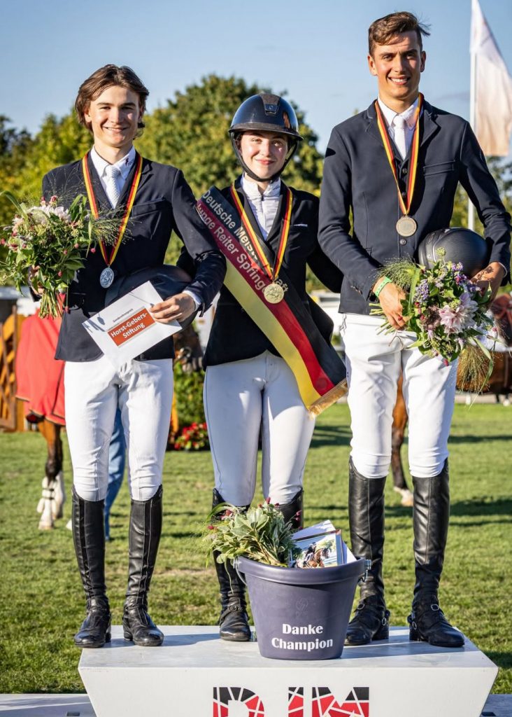 - Bei den Jungen Reitern Springen bewies Magnus Schmidt erneut Nervenstärke: Im ersten Umlauf fehlerfrei, im 2. Umlauf leider einen Zeit- und einen Springfehler – das bedeutete am Ende Platz 6 in der S***-Prüfung und somit den 3. Platz in der DJM-Gesamtwertung!
